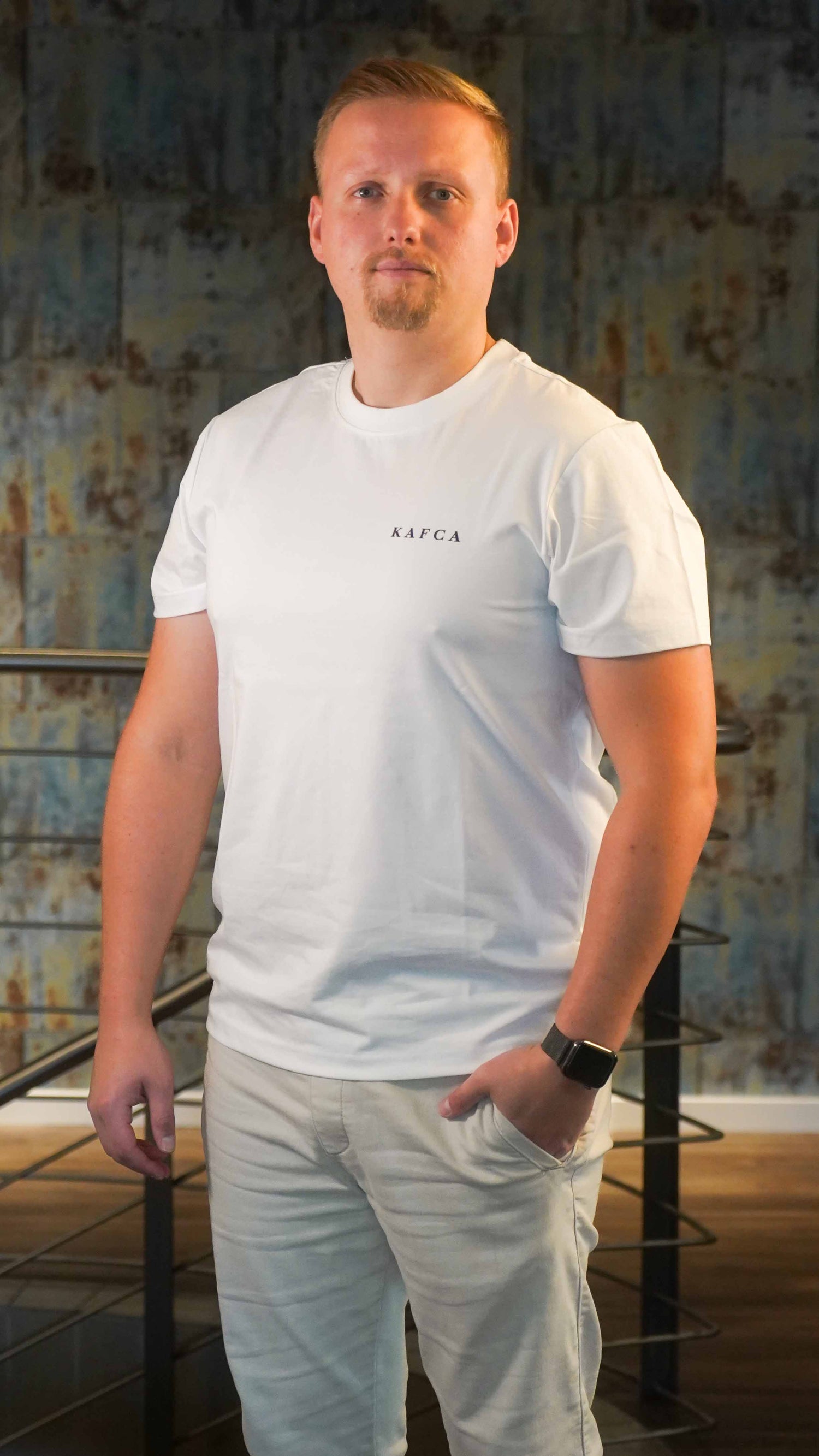 Unsere Kollektion greift das berühmteste Motiv aus Franz Kafkas Welt auf: den Käfer. Eine Hommage an "Die Verwandlung". Bei KAFCA ist der Käfer nicht Symbol für Entfremdung, sondern für Selbstbehauptung in einer Welt voller Erwartungen. Auf der Vorderseite dezent, auf der Rückseite ein Statement. Unsere Produkte tragen das KAFCA-Logo auf der Vorderseite platzgenau über dem Herzen: schlicht, aber bedeutungsvoll. Auf dem Rücken entfaltet sich das großflächige Käfer-Muster, neu gedacht als Symbol für Identität, Wandel und Selbstbehauptung.